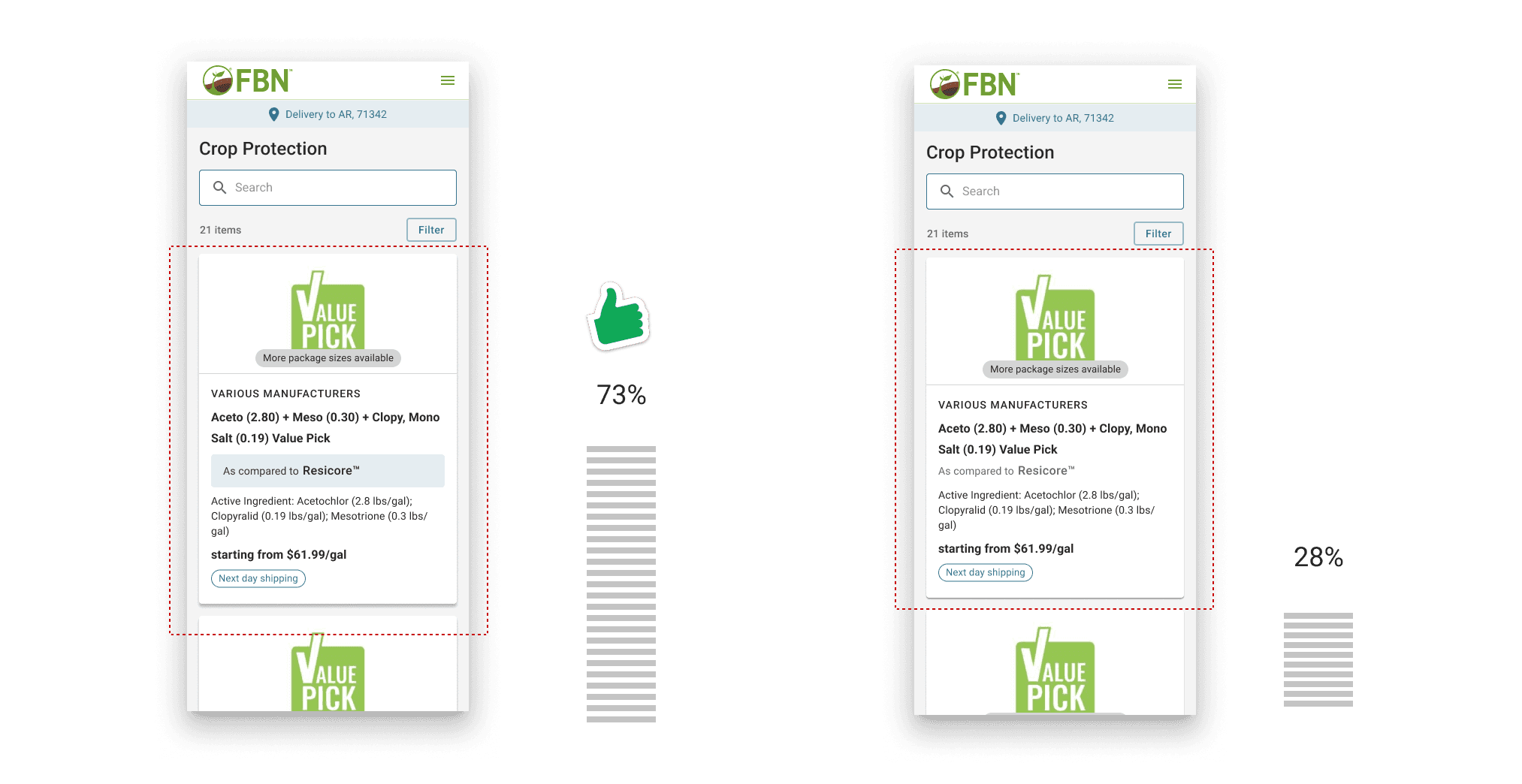 Farmers faced hundreds of similar SKUs with technical terminology and dense data. The result: drop-offs and reliance on sales reps.