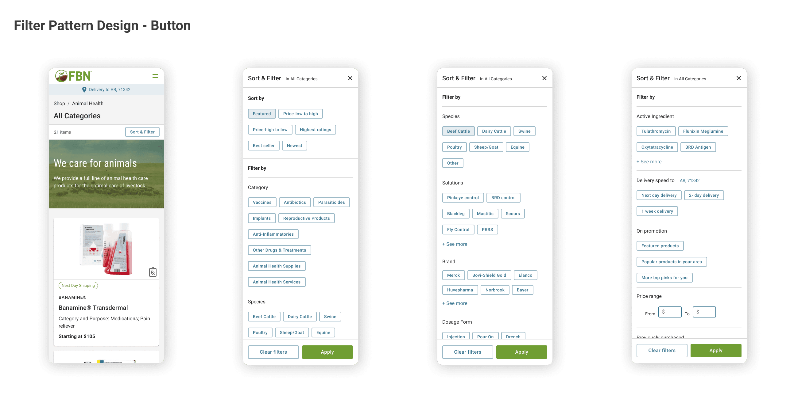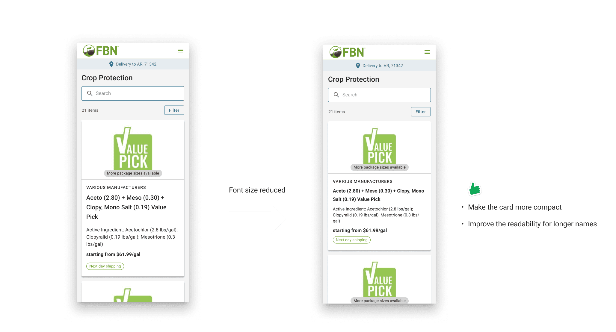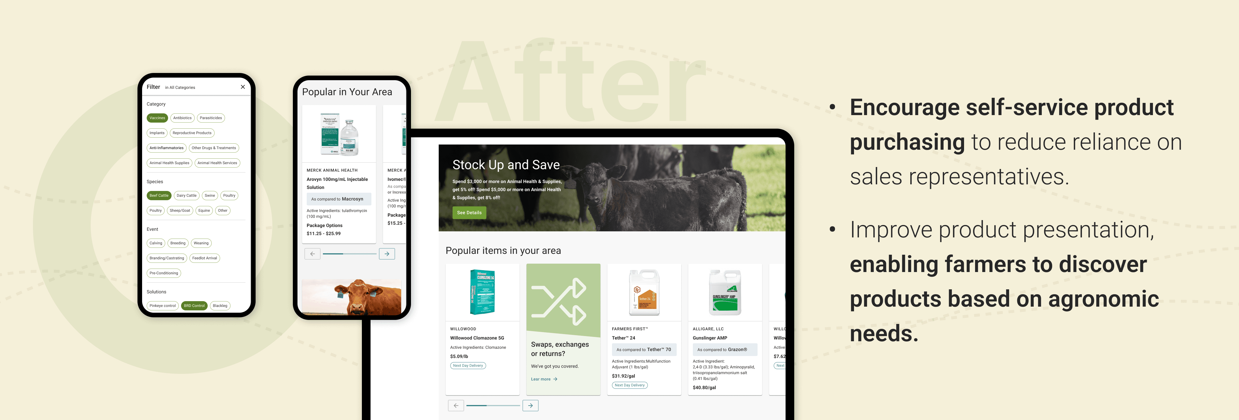 FBN’s Store had outgrown its legacy interface. Although product offerings had expanded dramatically, the site still relied heavily on sales representatives to guide farmers through SKU selection, pricing, promotional content, and product comparisons.
