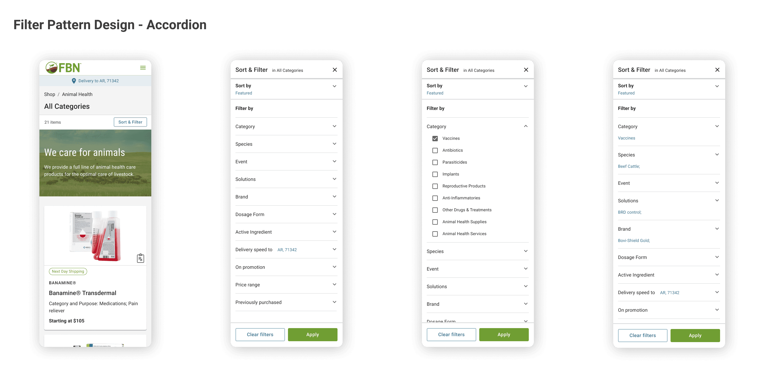 I led the strategic redesign of the FBN Online Store Category Page, shifting the business from a service model to a scalable e-commerce platform by establishing a mobile-first information hierarchy and robust filtering logic. This high-leverage initiative successfully drove customer self-service behavior, resulting in a 192% surge in store orders submitted post-launch.